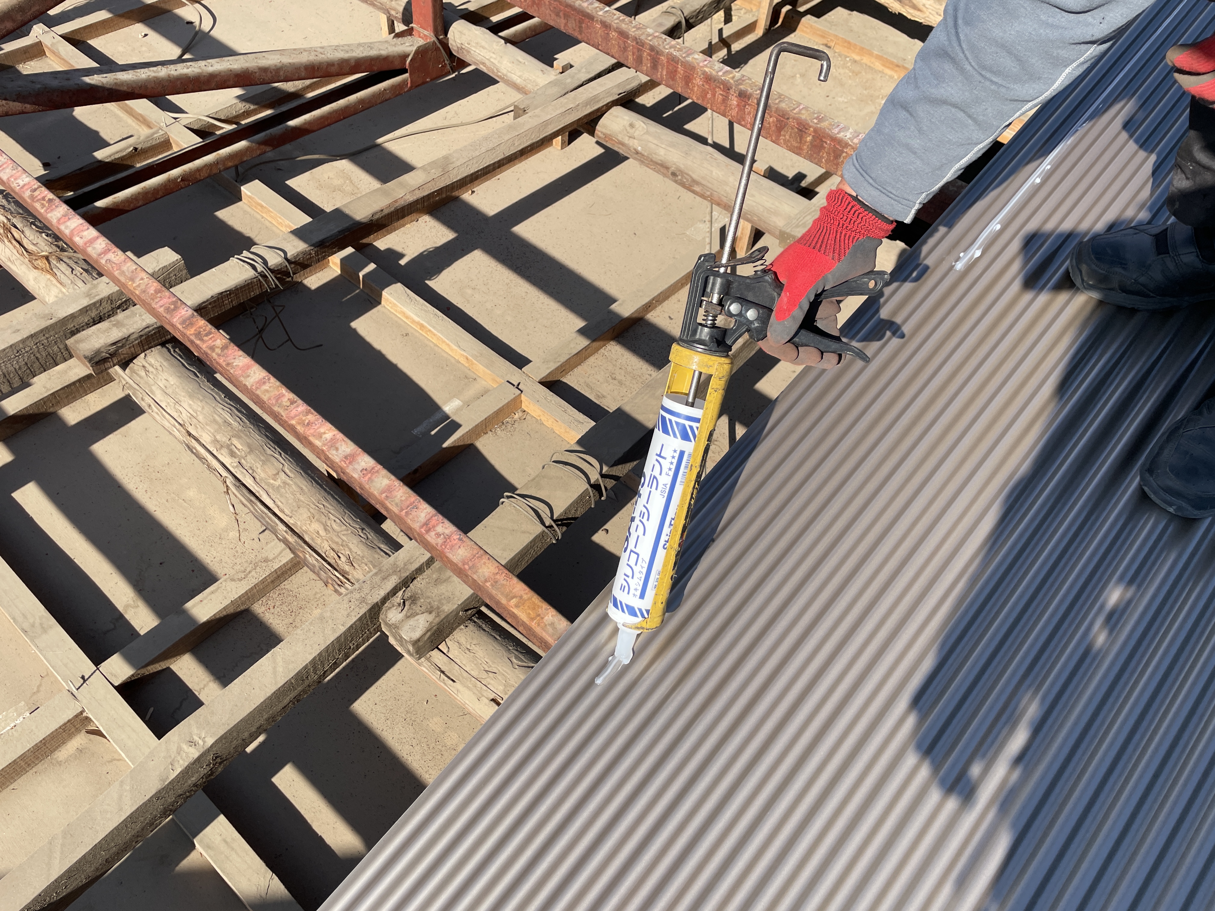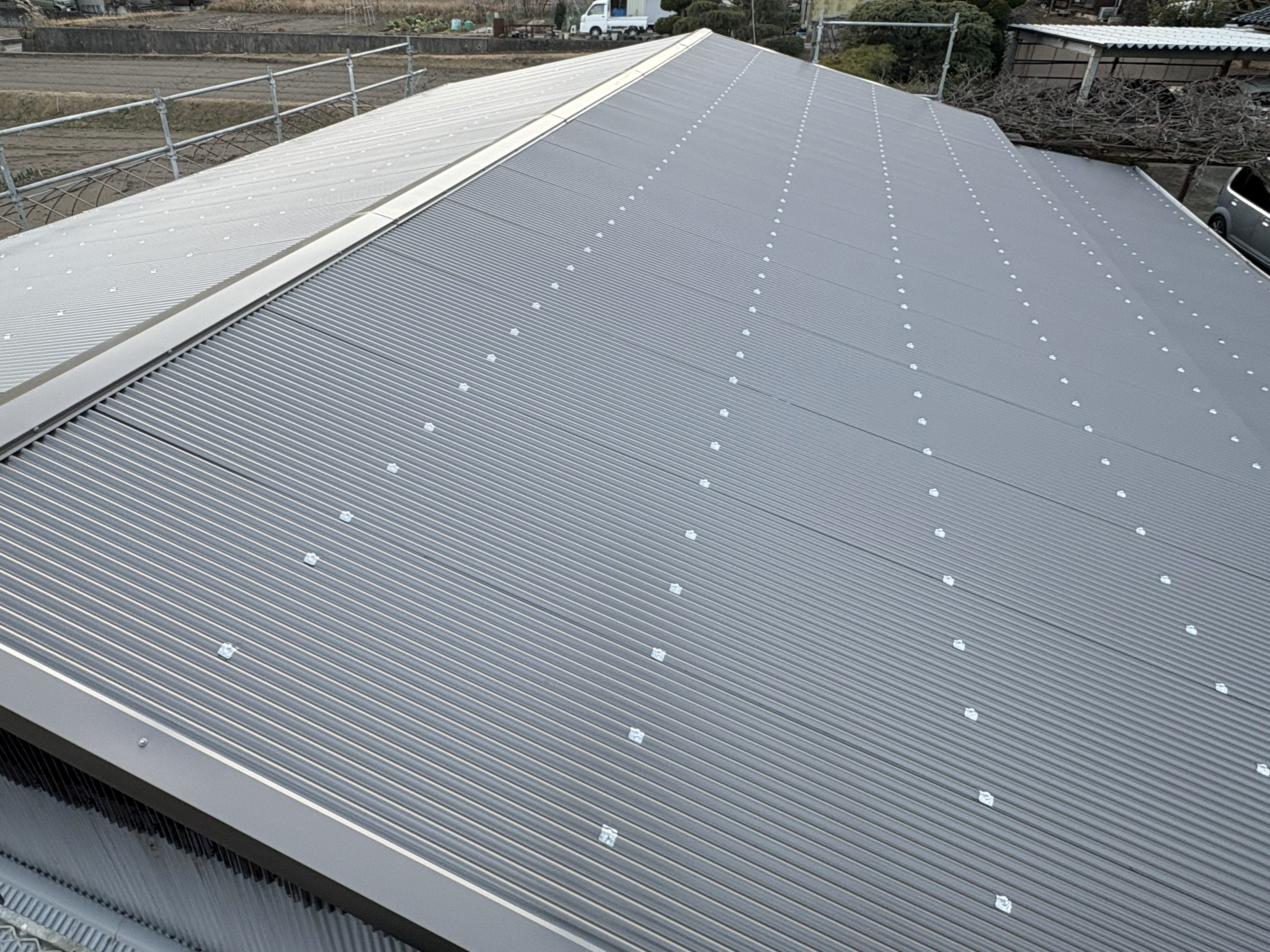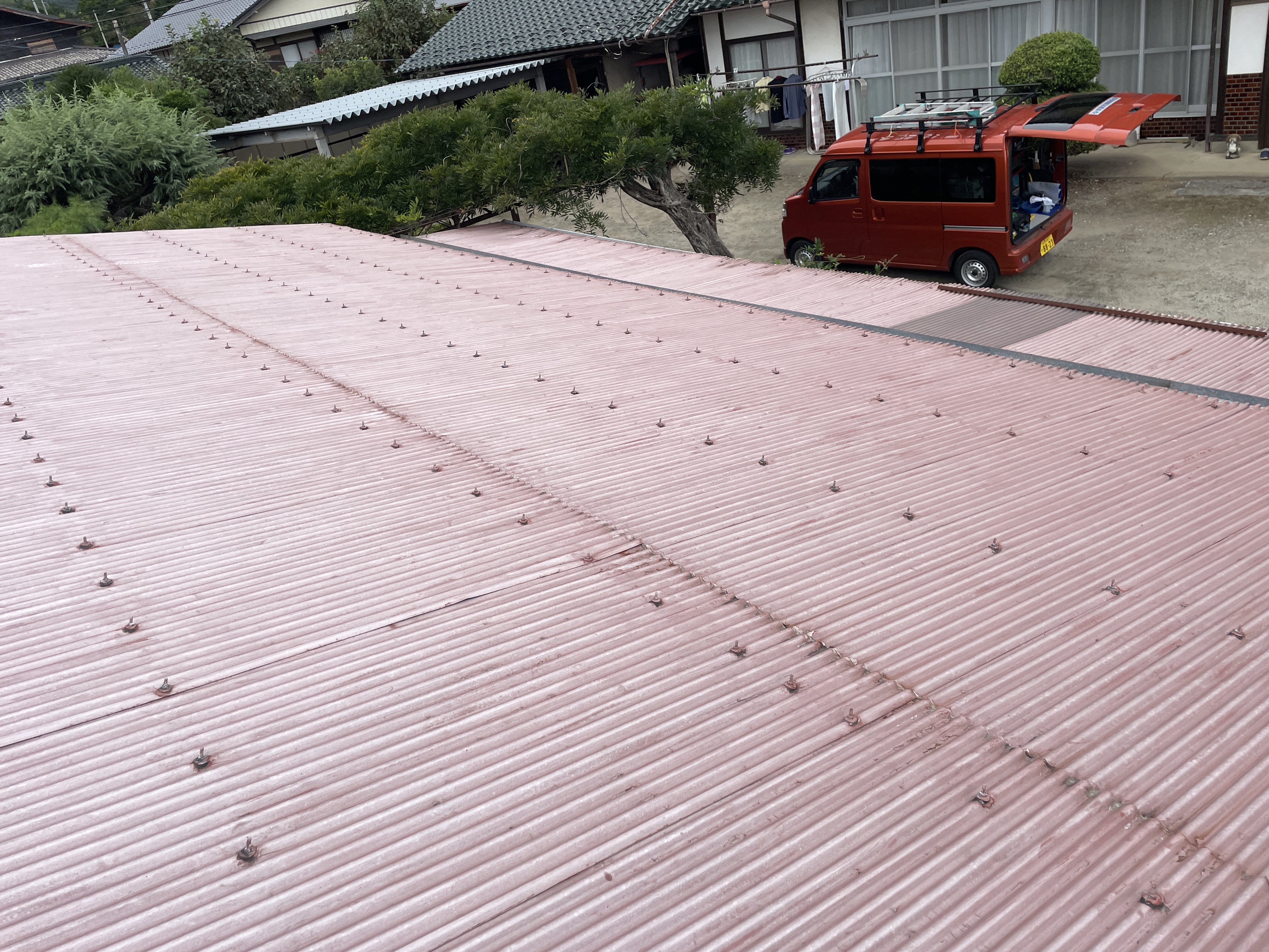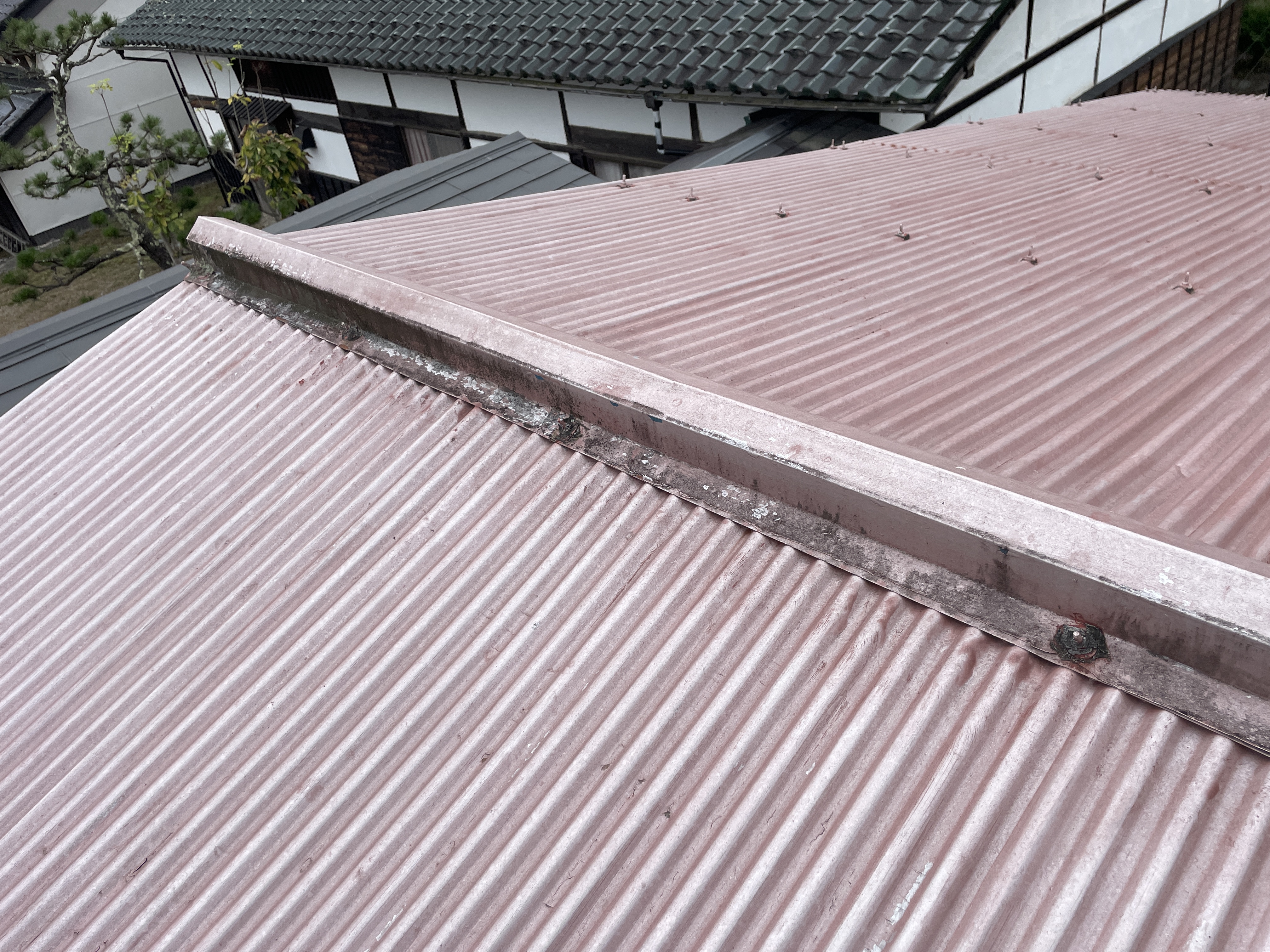 ( `ー´)ノ〈既存屋根は鉄板の波板…”生子(なまこ)”と呼称されることが多いです〉